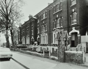 Nos 28 & 29, that stand where Crispin & Borst builders’ yard once was; their head office latterly in No. 27, though prior to that just after World War II Crispin and Borst had apparently used most of the houses on the east side.