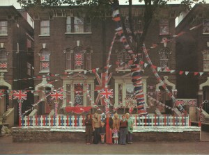 Jubilee Year, 1977 – the 25th anniversary of Queen Elizabeth’s assent to the throne, celebrated here in Mornington Grove – this picture outside Nos. 15 & 16, with Mari, Sylvia, the Freeman family. Photograph by Kenneth Griffiths The Sunday Times Book of Jubilee Year, ed. Hunter Davies, 1977 Michael Joseph Ltd, London.
