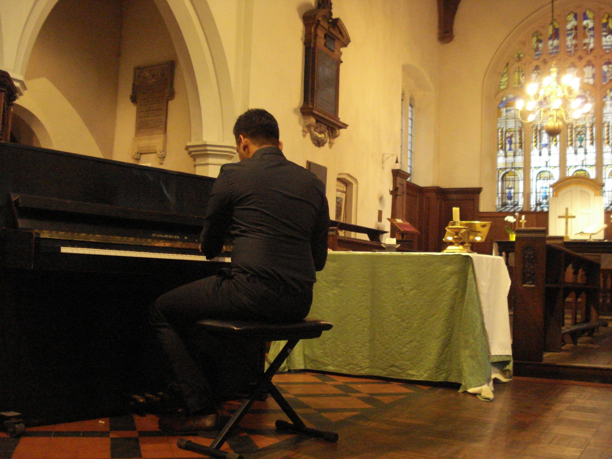Jay Parte, the pianist who had travelled from India to further his career in the UK, and had now even crossed the Thames from Greenwich to give Bow the benefit of his musical skills, strode to the piano, sat at it, and without further ado launched into Chopin Fantasie Impromptu, op.66. Within seconds my anxieties were lifted and my spirits floated aloft towards the rafters of the old church roof, for not merely did Parte reveal himself to be a sensitive pianist, but he managed to make this limited old Joanna sound almost worthy of the music he played upon it. Okay, the bass didn’t resonate and the middle sounded muddy, but the pianist found a way of making magic with it. Indeed, the Mozart Rondo in A minor, K 511, suddenly seemed perfectly adapted for this instrument, all of a piece with the tasteful restraint of Parte’s interpretation. It’s so difficult to do, play Mozart without romanticising it whilst yet enabling the full expressive potential of the music to speak, but Parte accomplished this very nicely indeed.